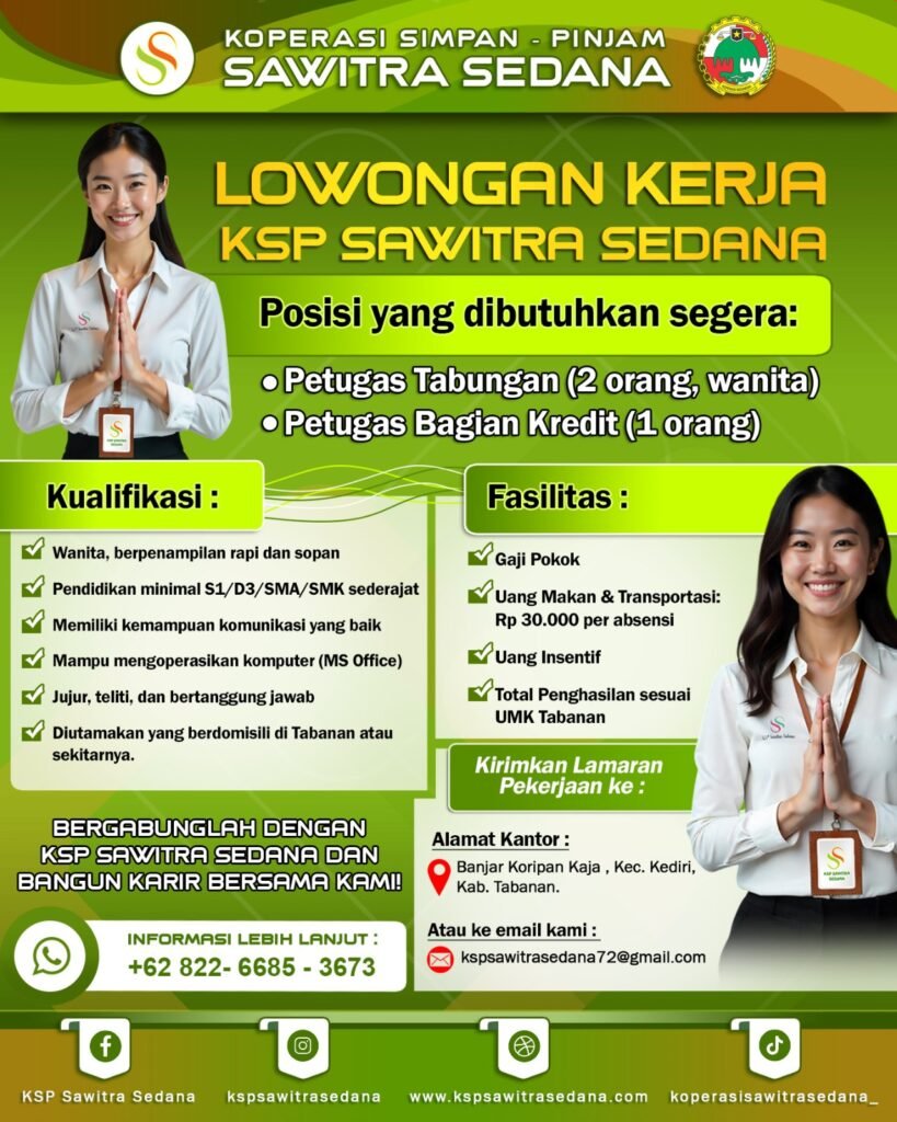 Lowongan Pekerjaan KSP Sawitra Sedana